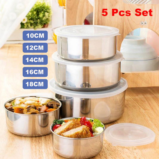 5 posuda za hranu od nerđajućeg čelika sa poklopcem