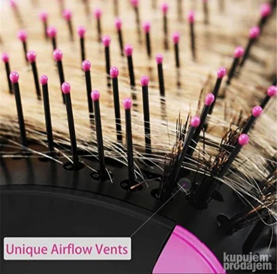 Predstavljamo vam **2 u 1 četku za sušenje i oblikovanje kose**! Sa **dvije jačine grijanja** i ugrađenim **jonskim generatorom** koji omogućava brzo sušenje, dok keramički sloj štiti vašu kosu od oštećenja. Inovativan protok vrućeg zraka raspoređuje toplotu cijelom dužinom četke, čineći stilizovanje jednostavnim i efikasnim.