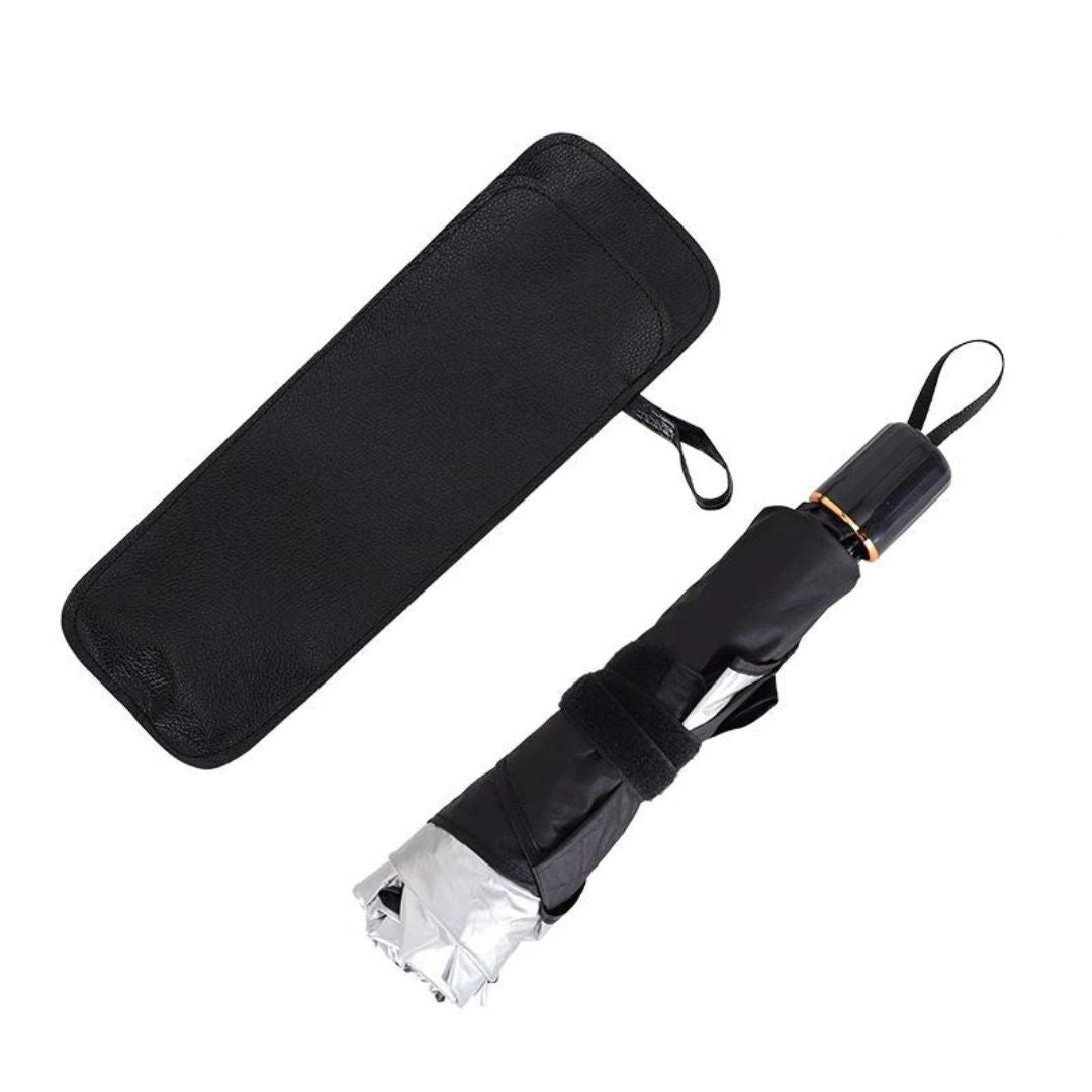 CAR UMBRELLA zastor za vjetrobransko staklo automobila jednostavno se otvara za nekoliko sekundi kao kišobran ili se sklapa za skladištenje bez zauzimanja dodatnog prostora. Paket uključuje kožnu zaštitnu torbicu za skladištenje. Ukupno je oko 12 inča i teži manje od 1 lb kada je sklopljen, te se može smjestiti u panelna vrata, ispod sjedišta ili u pretinac za rukavice.