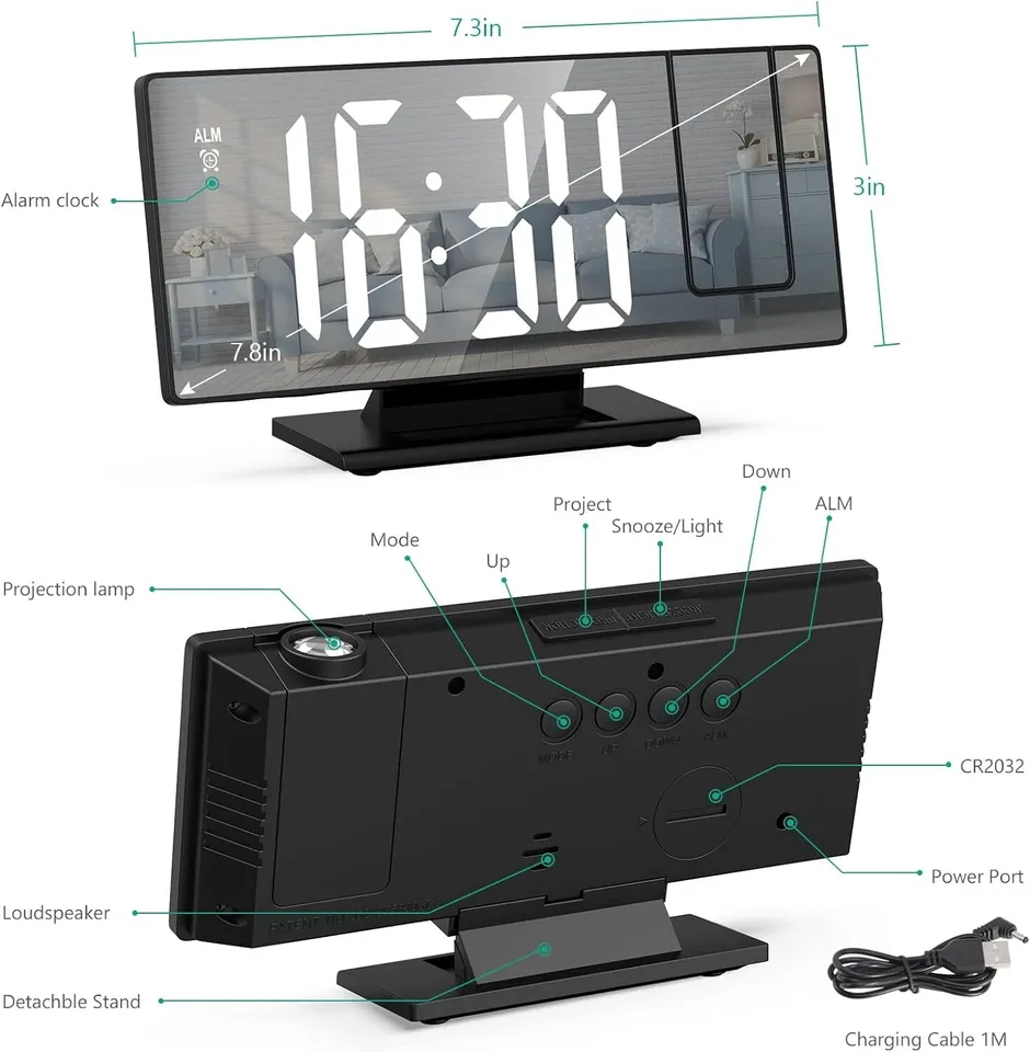 3) LED vremenska projekcija: projekcija je jasna i ugao projekcije se može podesiti; pritisnite taster za projekciju da biste uključili ili isključili.