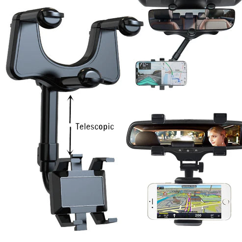 Ovaj rotirajući držač omogućava vam da postavite telefon na retrovizor automobila, pružajući jednostavan pristup horizontalnom ili vertikalnom ekranu. Idealan je za javljanje na pozive, puštanje muzike ili korišćenje GPS navigacije, čineći vašu vožnju sigurnijom.