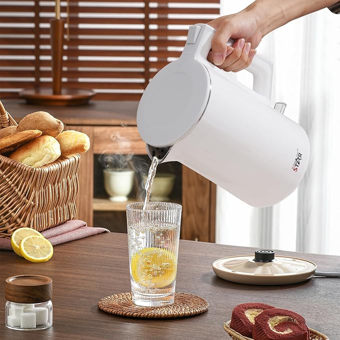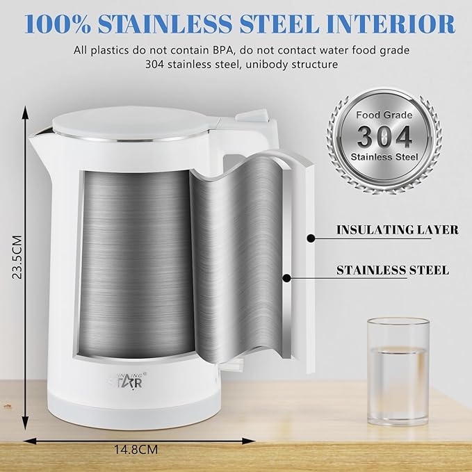 DVOSTRUKI ZIDNI DIZAJN - Spoljašnjost čajnika napravljena je od ABS materijala (bez BPA) kako bi se smanjio rizik od opekotina pri rukovanju posudom s prokuhanom vodom. Sigurniji je za starije i djecu. Takođe, duže zadržava vodu toplom.