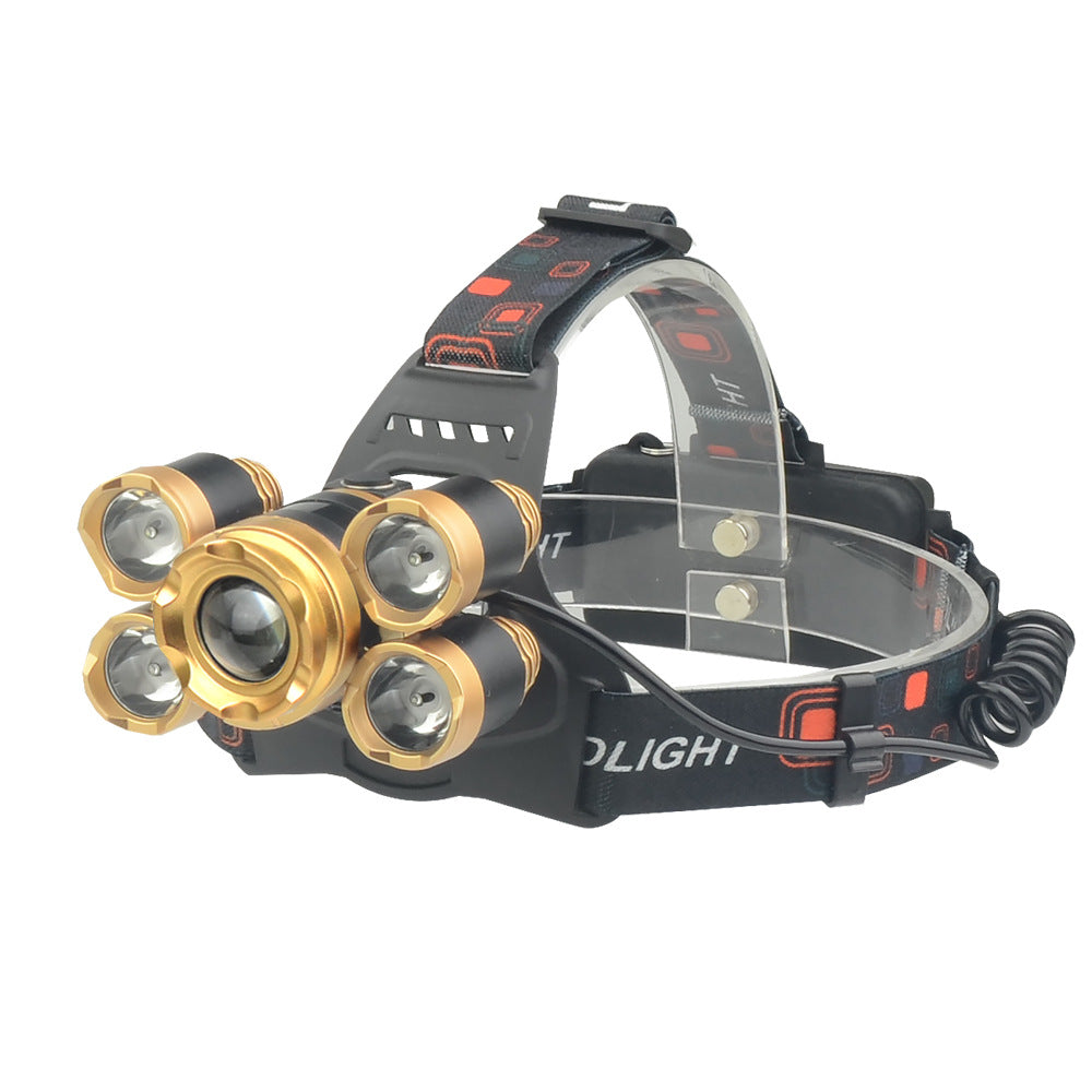 Led lampa za glavu sa zumom i 4 režima rada , centralna T6, 4x COB, svih 5 zajedno i stroboskop ili panik mod