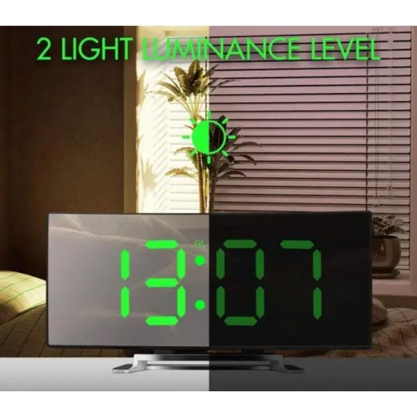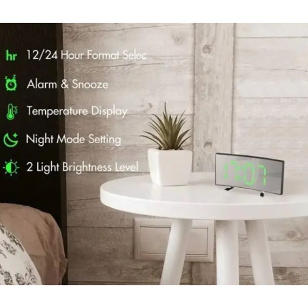 - Moderan sat sa ogledalom, alarmom,funkcijom odlaganja, prikazom temperature i podesivom osvetljenošću ekrana sa prigušenim svetlom tokom noći