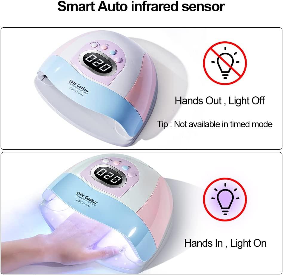 - Automatski senzor bez pritiskanja bilo kog dugmeta za podešavanje vremena – lampa za nokte će se automatski uključiti automatskim senzorom nakon što ruke uđu, a isključiće se nakon što se ruke ugreju