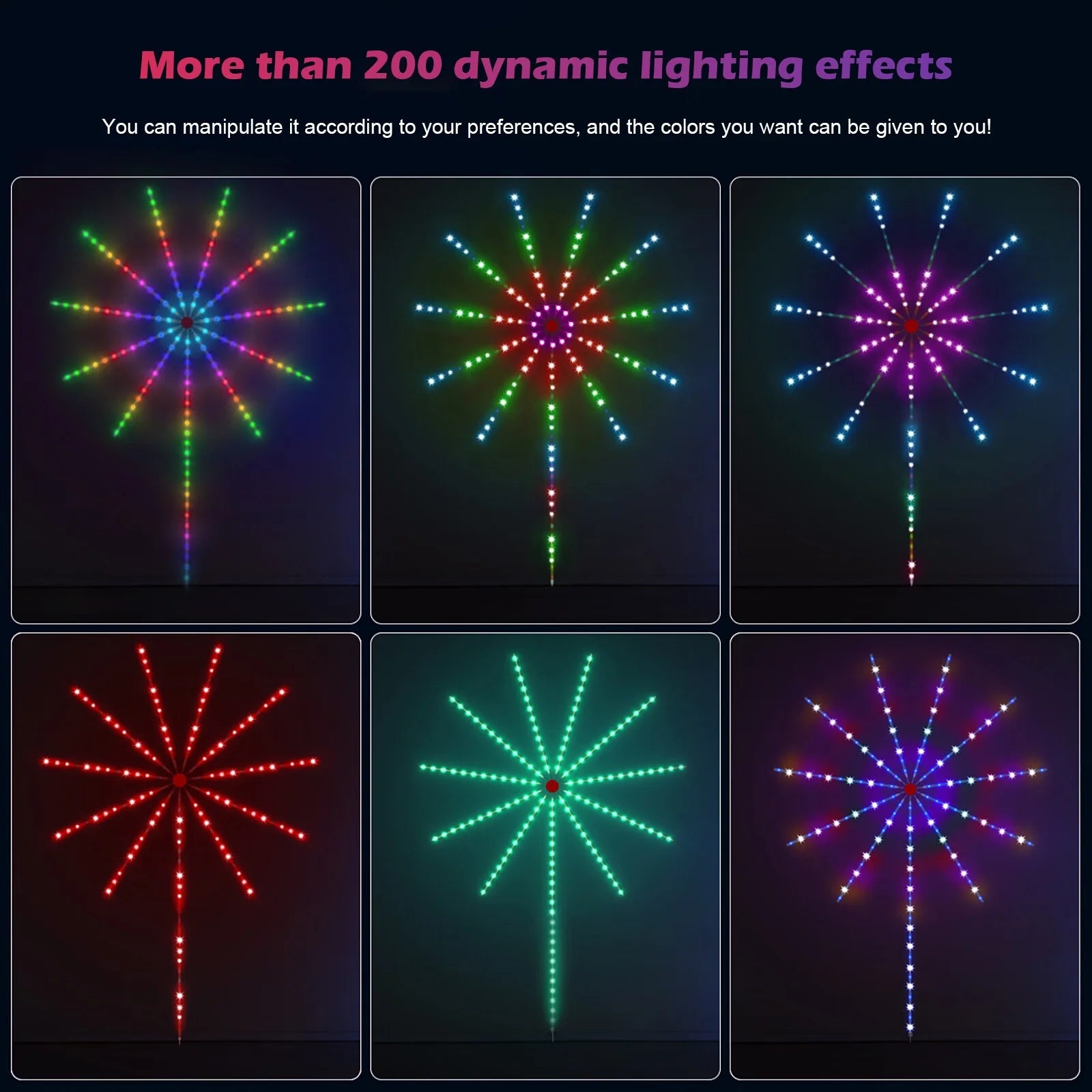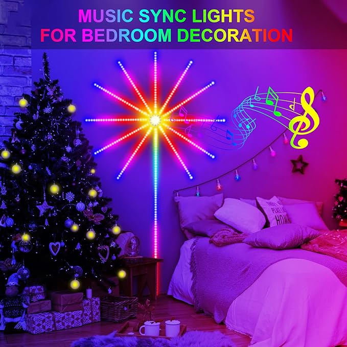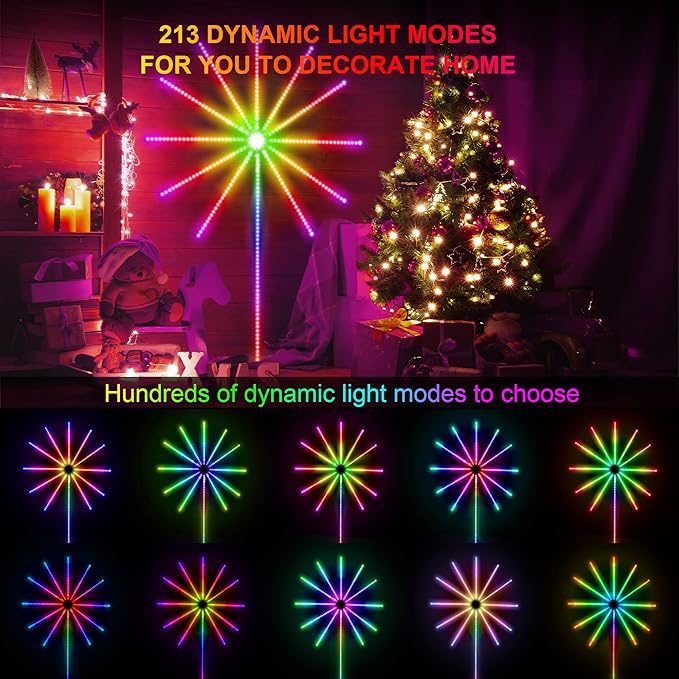 🎛️ Tri metode upravljanja: LED Firework svjetla se mogu kontrolisati pomoću daljinskog upravljača sa 40 tastera, aplikacije i kontrolne kutije. Preko daljinskog i aplikacije možete uključivati/isključivati svjetla, podešavati jačinu svjetlosti, birati boje i modove, podešavati brzinu treptanja, tajmer, kao i režime muzike i mikrofona. Kontrolna kutija omogućava osnovne funkcije uključivanja/isključivanja i promjene modova.